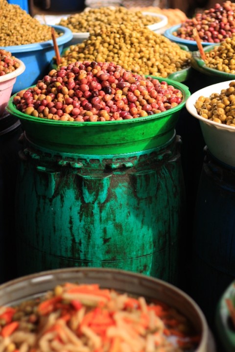 In general, if you are eating at a restaurant in Morocco all meals start with bowls of olives and bread that vary in quality and flavour. Then you can choose from tagines, couscous, or grills. I found the menu almost always largely meaty with not many vegetarian options and surprisingly and disappointingly rather bland flavours. This was also true in the two cases that we ate home cooked meals. So in general I was mostly disheartened by my nine days of a wheaty-meaty diet. I have to admit that nine days is not long enough to make sweeping statements about the food so I am still willing to believe that there is more amazing food somewhere in Morocco. I was just unable to find it readily. Still, what they did manage was to make their food look exceptionally beautiful, filled with Mediterranean colour.