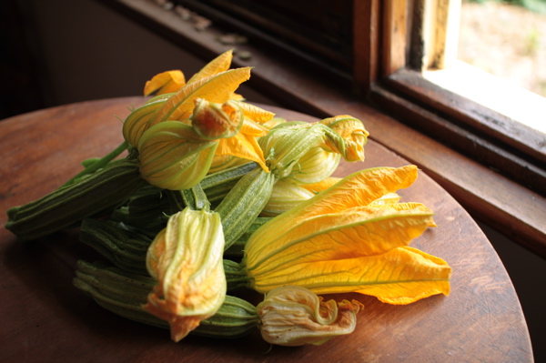 …yes, I stuffed those lovely delicate flowers with rice, feta, anchovies and herbs, baked them in the oven with cherry tomatoes and olives and invited 7 friends to come eat them with me.