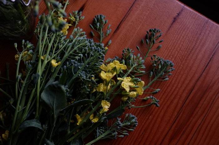 I went away just as the broccolis were perfect for picking. When I came back they were blushing with yellow flowers. I did a great job of forgetting about them. And then I forgot about them some more.