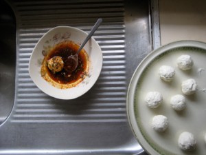 To start with, I took some labna, which you can make by following the recipe in my last post, and rolled it into balls.