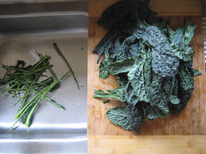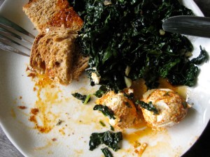 I placed the kale in a fry pan with more garlic, some butter and a little olive oil and cooked it until just wilted.