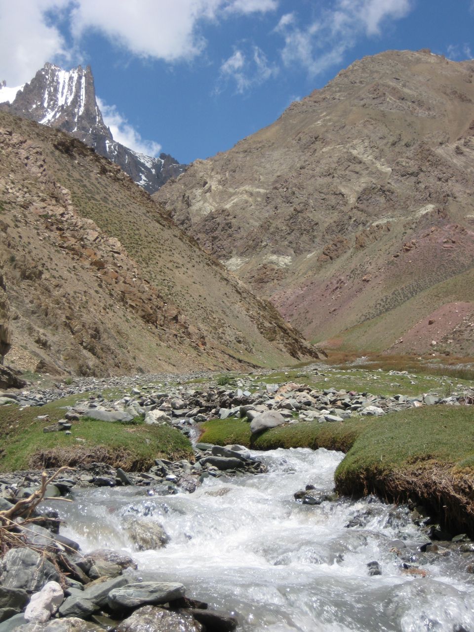 Other days I follow the small stream up behind the Gompa into a canyon that becomes narrower and narrower drawing nearer to its source. There in the rock pools I swim comfortably naked and alone among the pastel green, maroon, and orange of the boulders. The water as glass, streams crystal clear over the rocks, like cloth falling over the landscape, cool enough to make me gasp but warm enough to linger a while.