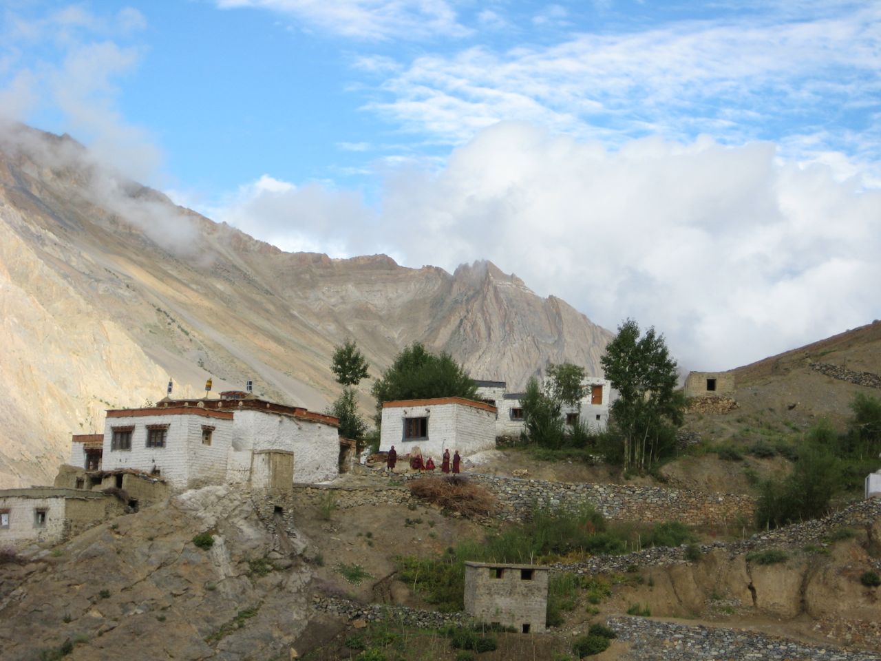 My last day in Zangla, I wake up from my small window to see the sun’s first rays on the fresh snow-capped mountains turning from grey to orange to yellow and finally to white as the day begins. My sleeping bag is slightly wet from rare rain that fell that night. After breakfast the nuns fill my bag with chapatis’ for my journey to Leh. Way to many for me to eat by myself but they insisted I take them all. We hear the bus coming so running out the door, kataks thick around my neck it finally dawns that I am leaving and tears prick my cheeks. I climb onto the roof of the bus. From there the nuns look so sweet waving in their maroon robes framed by the Gompa and the Himalayas. The fresh morning and the smiling mountains feel good on my damp cheeks. I am full with the privilege to have lived a little in their world.