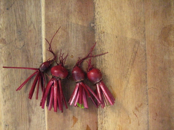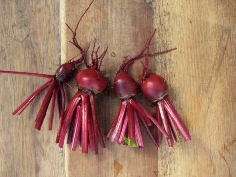 I pulled these little beets from the garden today. So sweet!