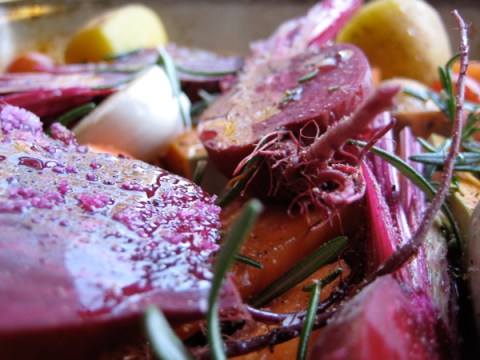 roast vegies and baby beetroots