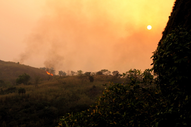 We have watched Mena Hill from our house ever since we arrived here. Wondered how big it was, always confused, sometimes looking huge and looming and other times small and meek. A trick of perceptions leaving us curious. We watched it through clear blue sky at dawn and dusty dusky hues in the evening. We watched it burn red and hot strips of flame, the crackling clearly audible through the still air.